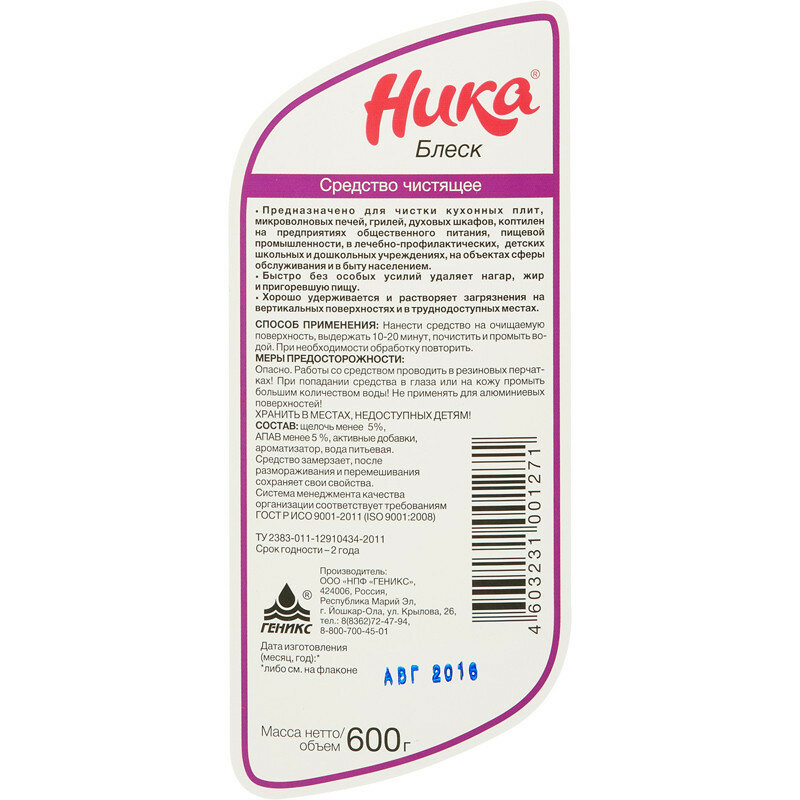 Чистящее средство для плит Ника "Блеск", 600мл (4603231001271)
