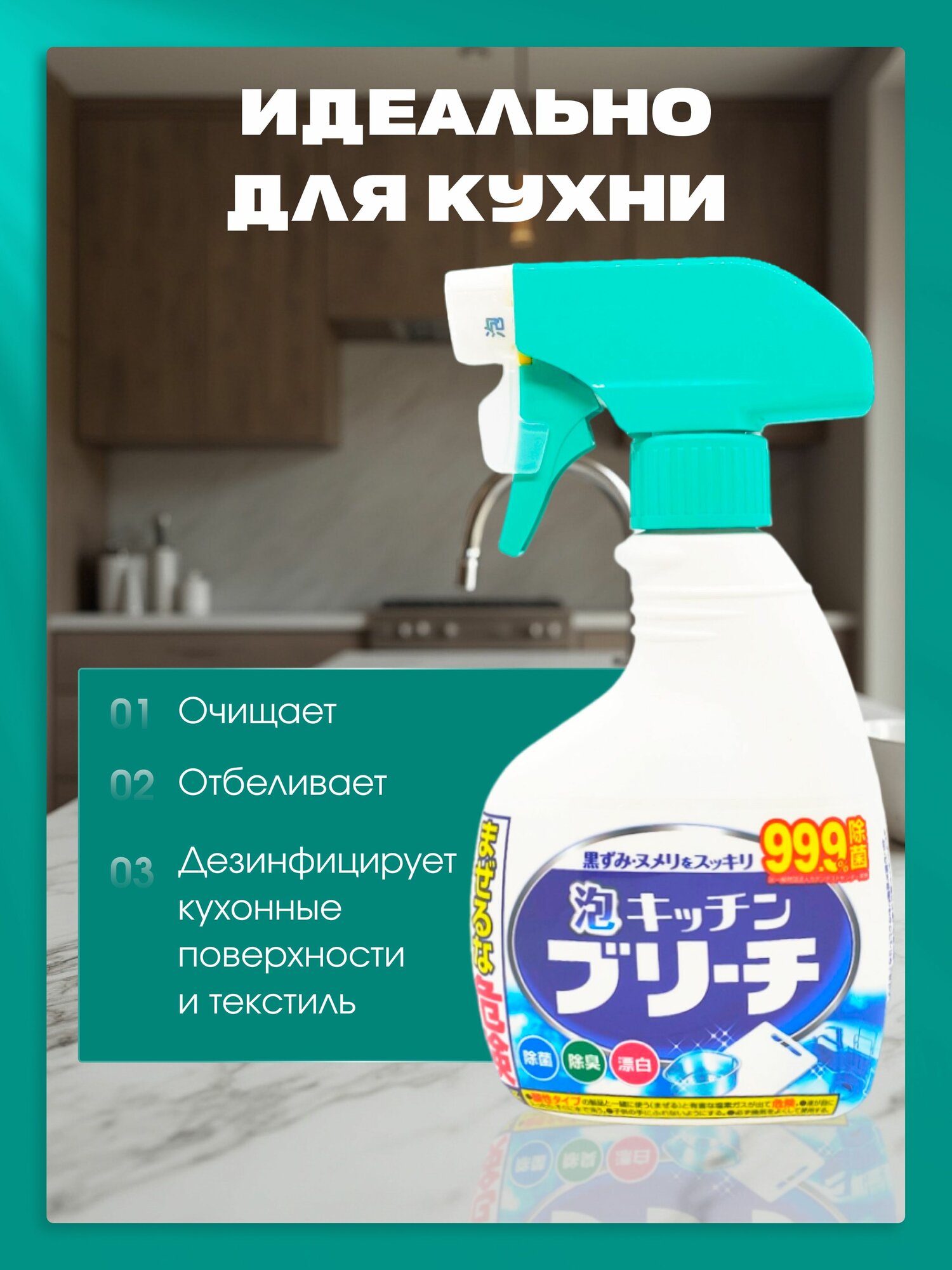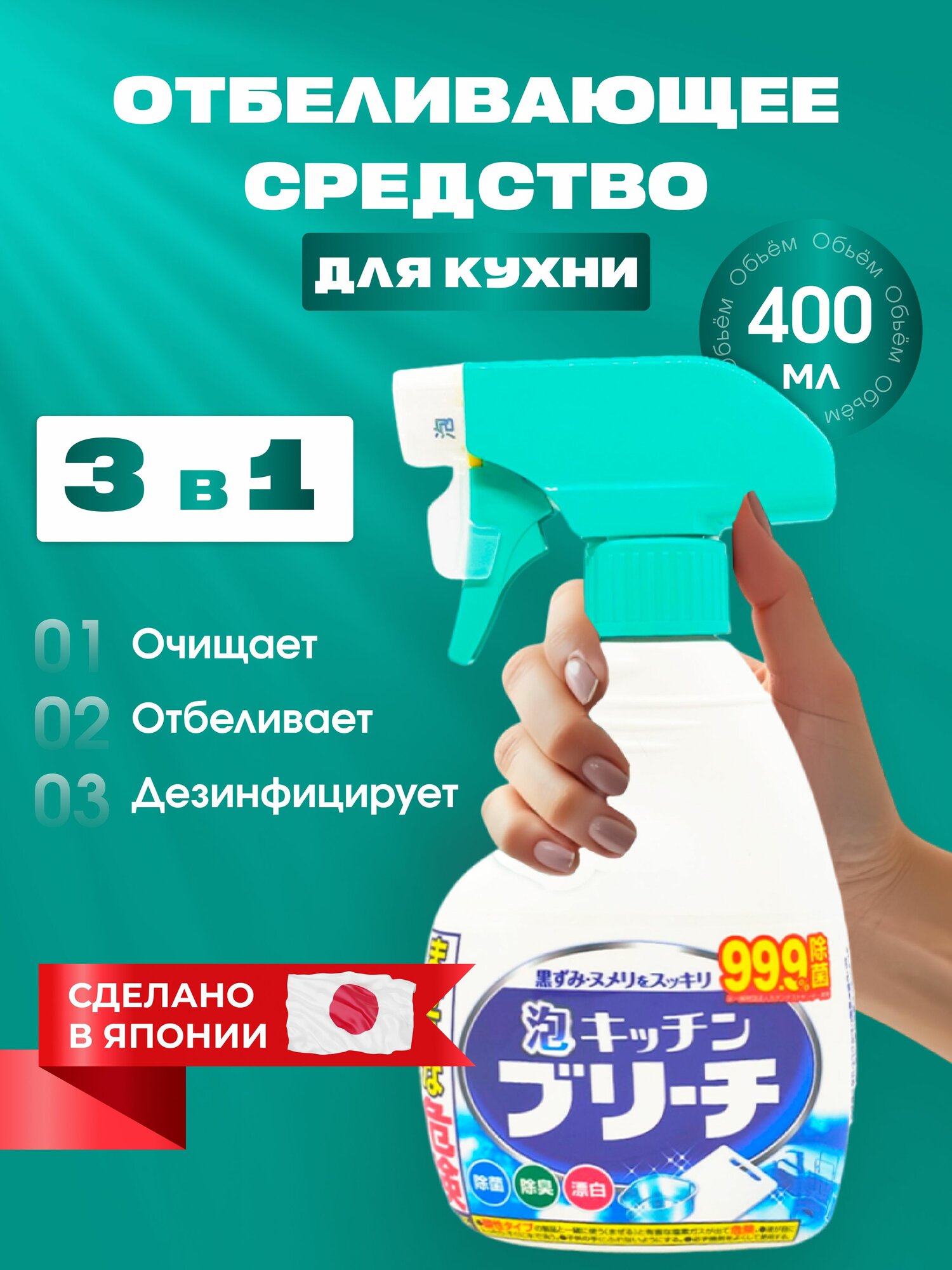 Купить Чистящее средство Mitsuei кухонное универсальное моющее и отбеливающее, 400 мл, спрей