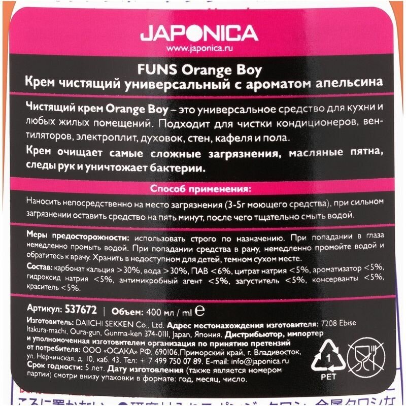 Универсальный чистящий крем Orange Boy с ароматом апельсина FUNS, 400 мл