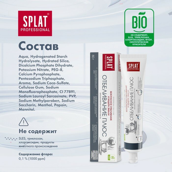 Зубная паста SPLAT Professional, Отбеливание плюс, 80 г, в тубе в коробке (4603014008480)