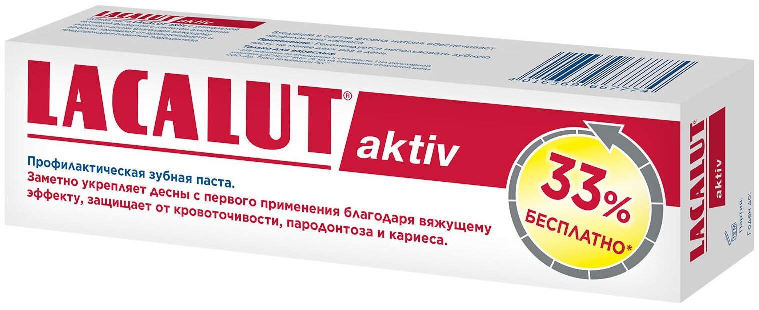 Купить Зубная паста LACALUT Aktiv 100мл. +33% бесплатно