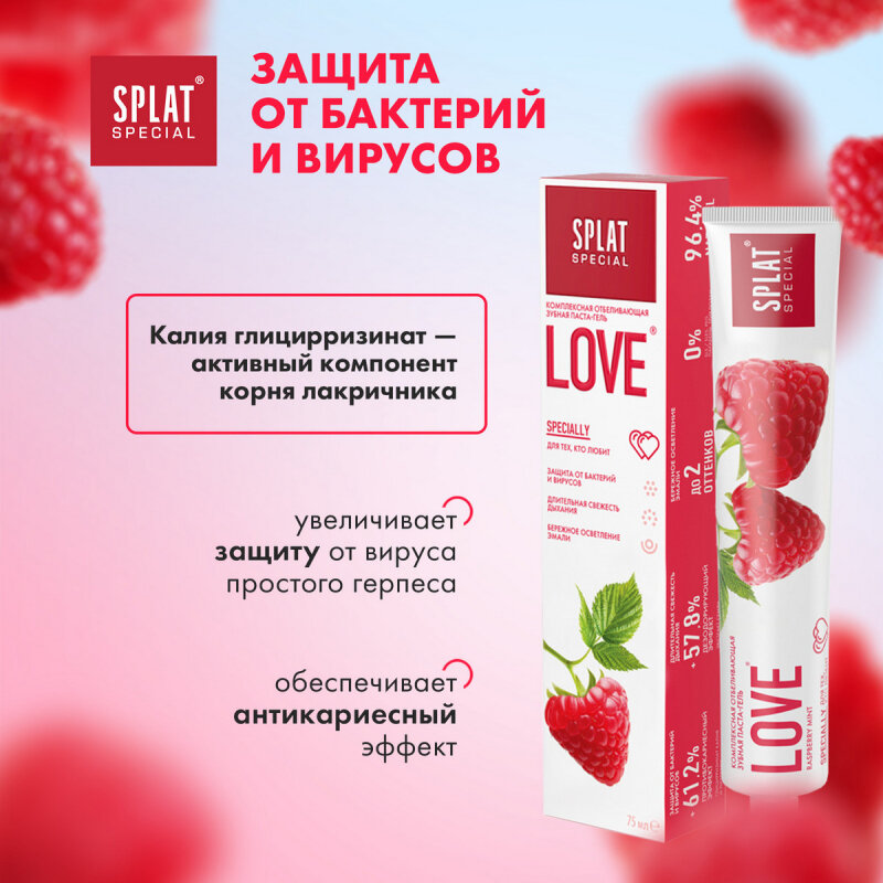 Зубная паста Splat Special Love отбеливающая, защита от бактерий и вирусов, 75 мл