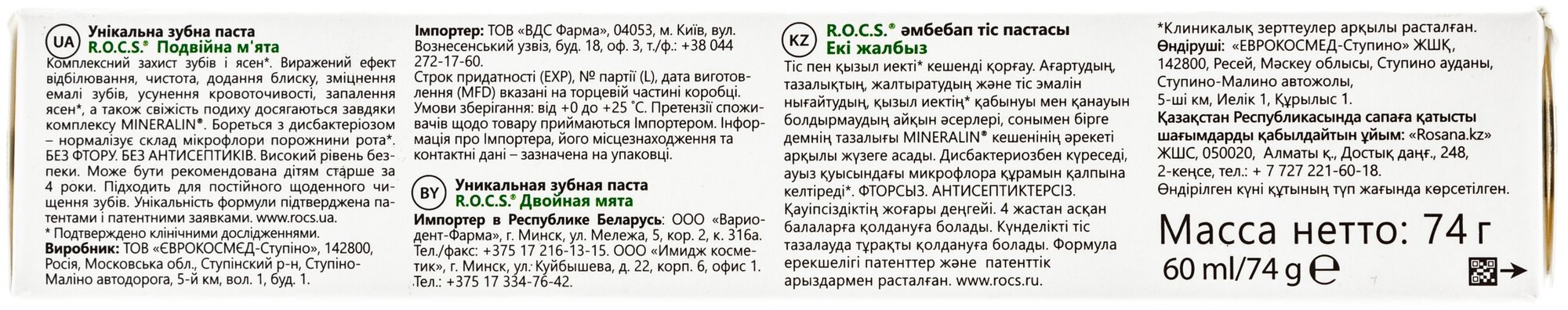 Зубная паста R.O.C.S. Двойная мята, 74г