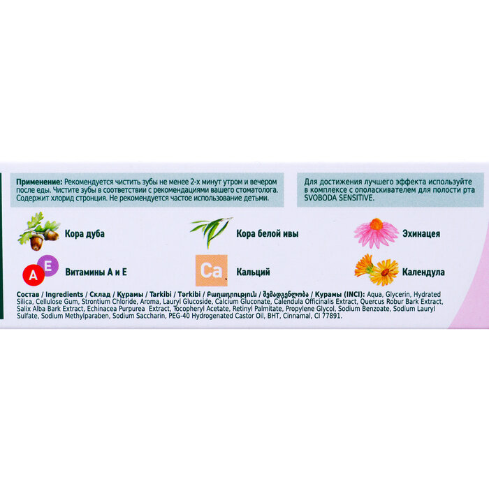Свобода (Svoboda) 1115445 Зубная паста "SVOBODA" sensitive 124г Свобода