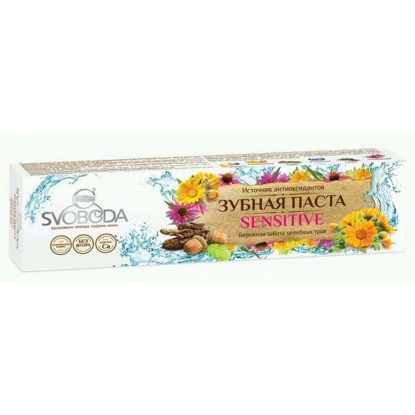 Зубная паста Свобода "Sensitive", Забота целебных трав, в ламинатной тубе, 124 г