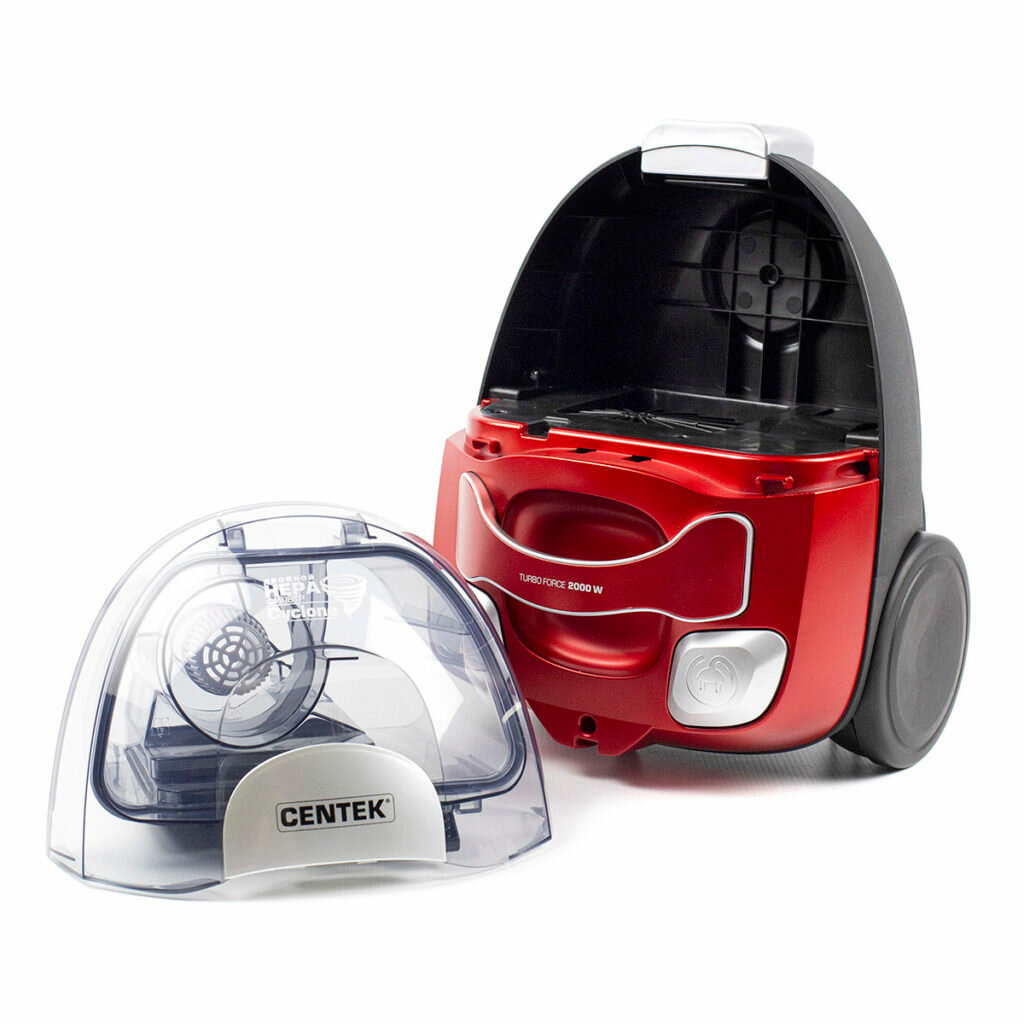 Пылесос для дома с контейнером CENTEK CT-2535 - черный/красный, циклон 2000/350Вт, 2 HEPA фильтра, телескопическая металлическая трубка