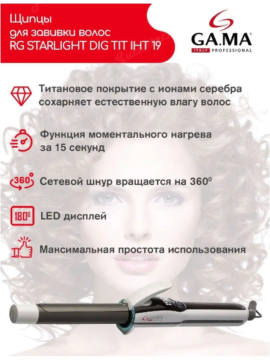 | Диаметр щипцов для завивки | 19 мм |