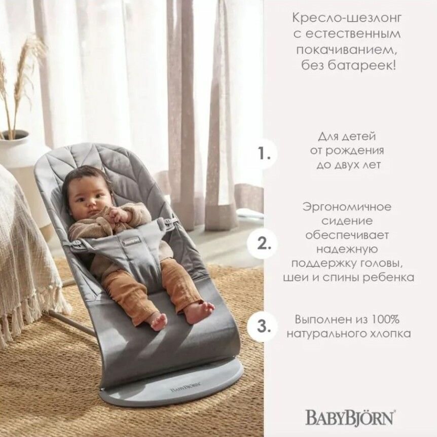 Кресло шезлонг BabyBjorn Bliss Cotton Light Grey