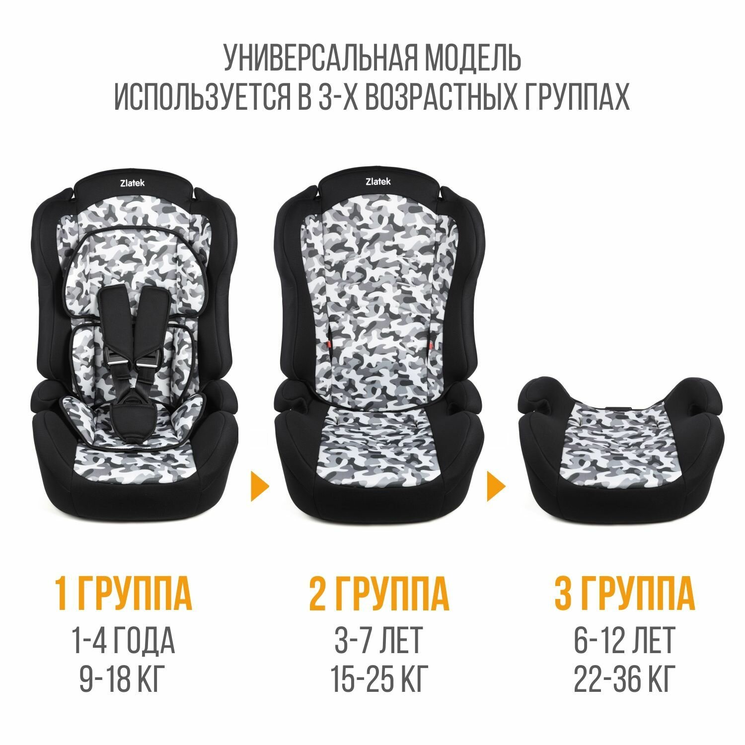 Автокресло детское Zlatek ZL513 Lux, цвет вариор, удерживающее устройство, бустер , группа 1-2-3, 9-36 кг, 1-12 лет.