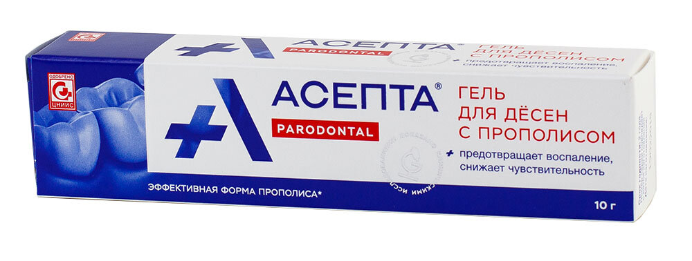 Асепта, гель для десен, от воспаления дёсен, для восстановления микрофлоры, для снижения чувствительности, с прополисом, 10 гр