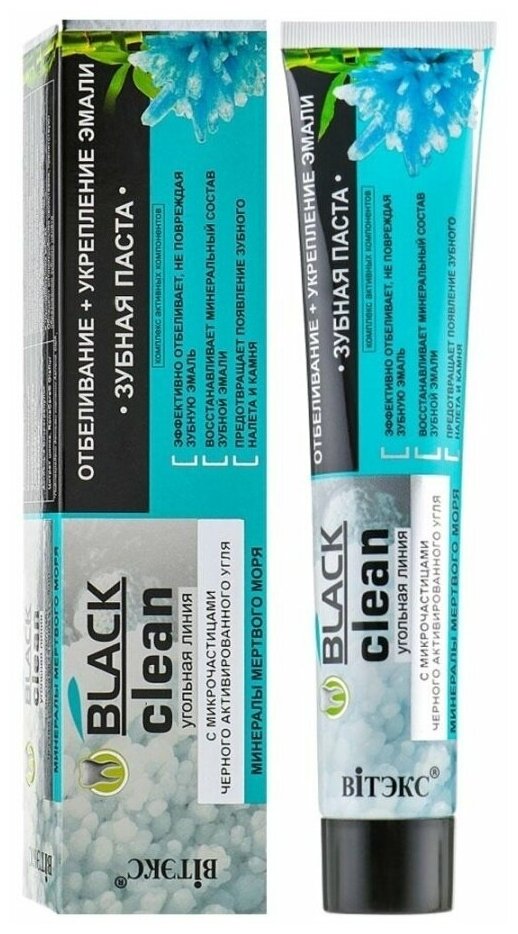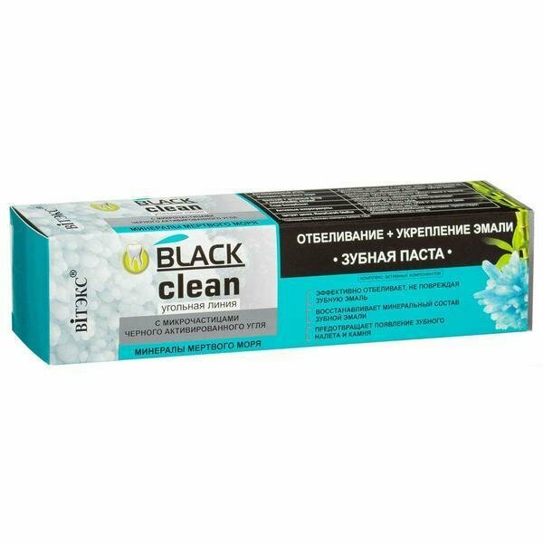 Зубная паста Витэкс Black clean отбеливание+укрепление эмали с микрочастицами черного активированного угля и минералами Мертвого моря, 85 мл, 85 г