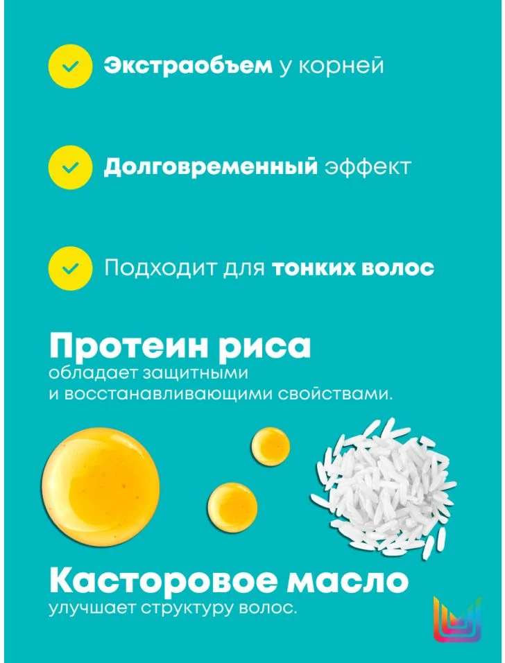 | Плюсы: | Даёт объем, не склеивает волосы, не утежеляет |