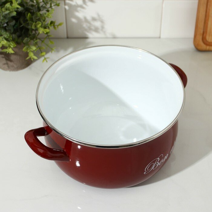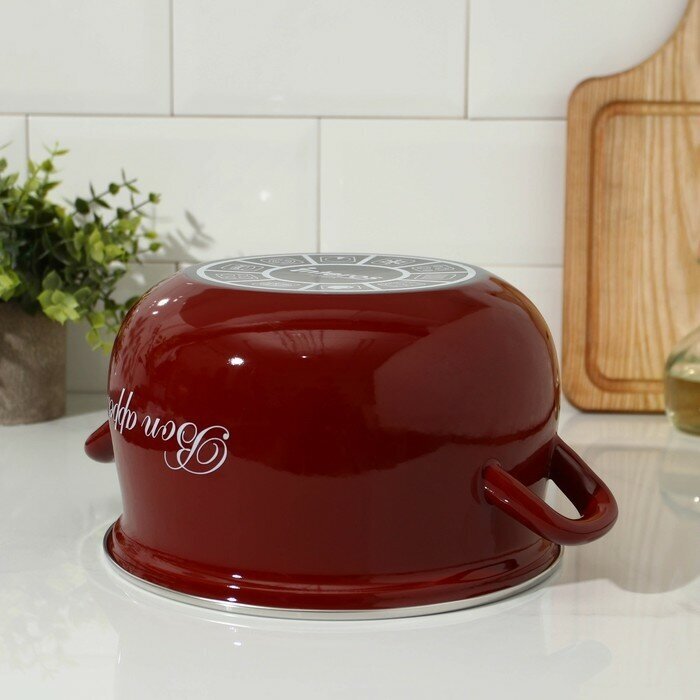 Кастрюля эмалированная 4 л "Бордо", стеклянная крышка, цвет красный
