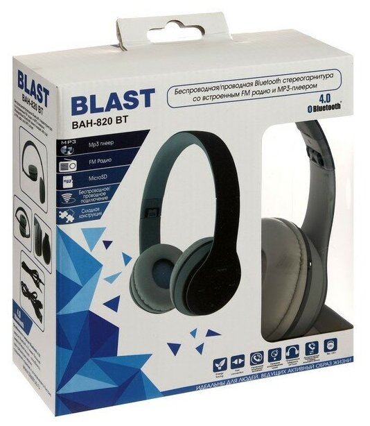 СохранитьБеспроводные наушники BLAST BAH-820BT, mini jack 3.5 mm, черный/серый интересное: