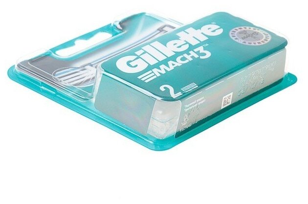 GILLETTE Mach 3 Сменные кассеты для бритья с 3 лезвиями, мужские, 2 шт