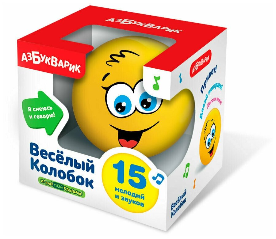 Игрушка музыкальная. Веселый колобок (15 мелодий и звуков) - Азбукварик