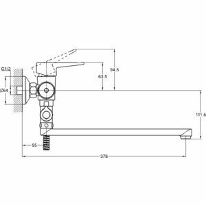 Смеситель для ванны G-LAUF NUD6-A045 с плоским пов. изливом, 35, выносной дивертор