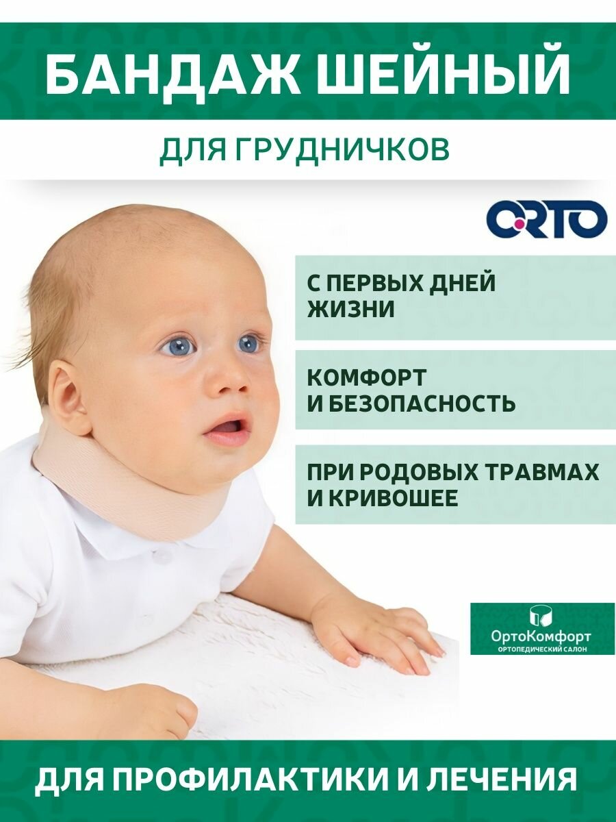 ORTO Ортопедический воротник (шина) Шанца для новорожденных (при кривошее),Шейный бандаж для грудничков 33x4/ умеренная степень фиксации