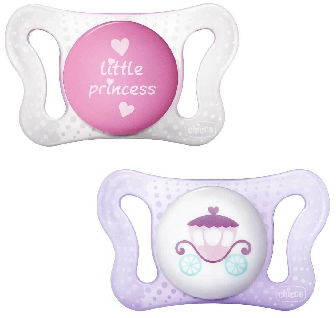 Пустышка силиконовая Chicco MICRO, 2шт., 0-2 мес., для принцессы, рисунок карета
