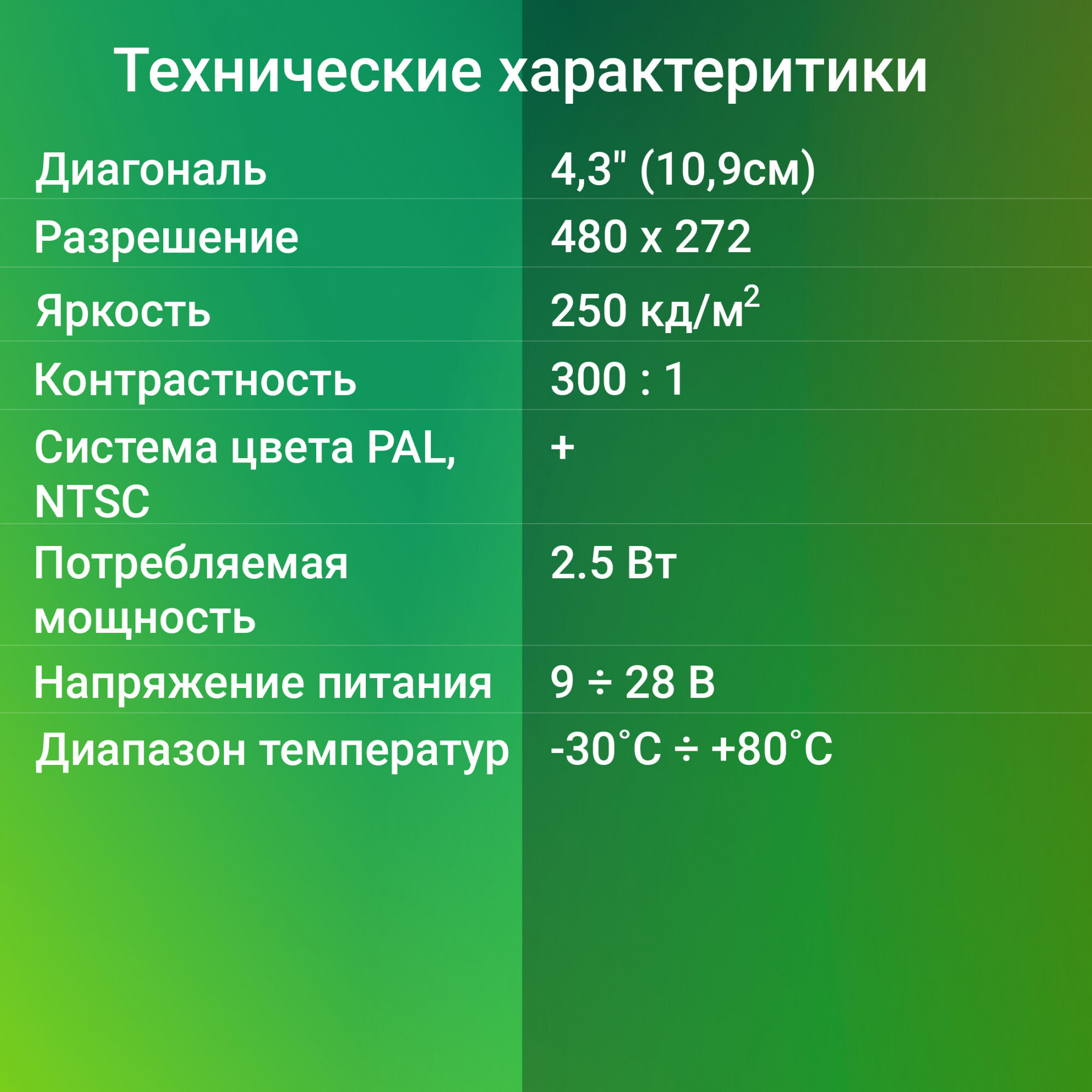| Разрешение экрана по горизонтали | 480 |