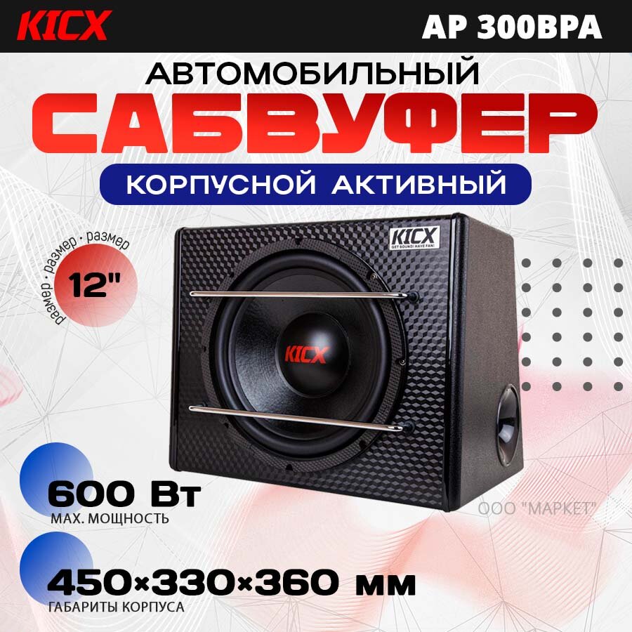 Сабвуфер корпусной активный Kicx AP 300BPA, 600 Вт, 4 Ом, 30 см
