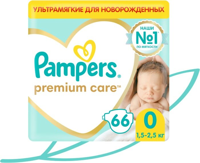 Подгузники Pampers Premium Care для новорожденных от 1,5 до 2,5 кг, 0 размер, 66 шт интересное: