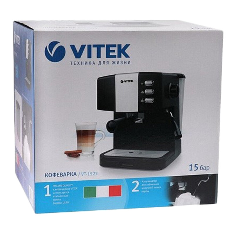 Кофеварка Vitek VT-1523, рожковая, черный / серебристый [1523-vt]
