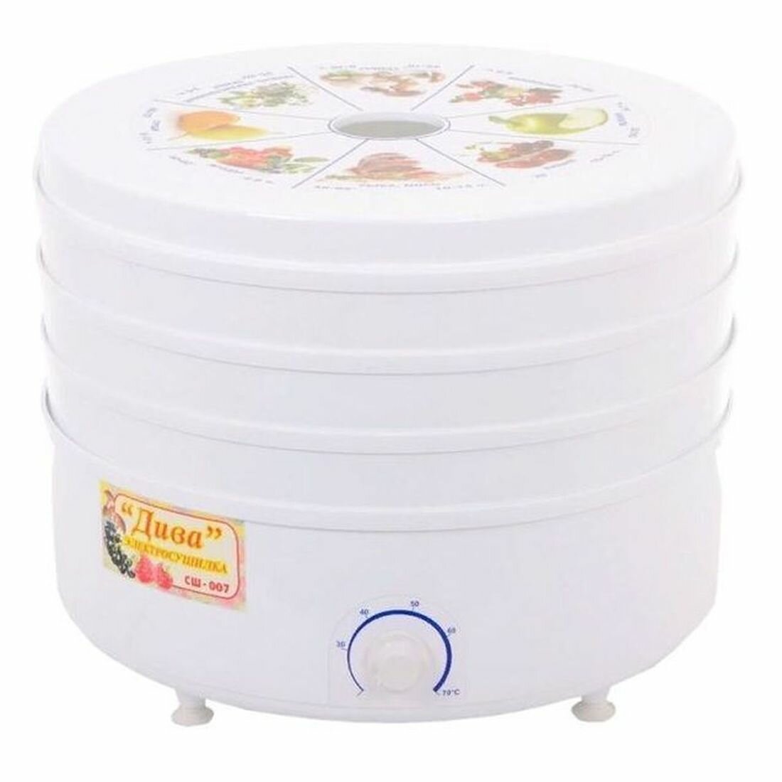 Сушилка для овощей и фруктов ротор Дива СШ-007-05, белый, 3 поддона
