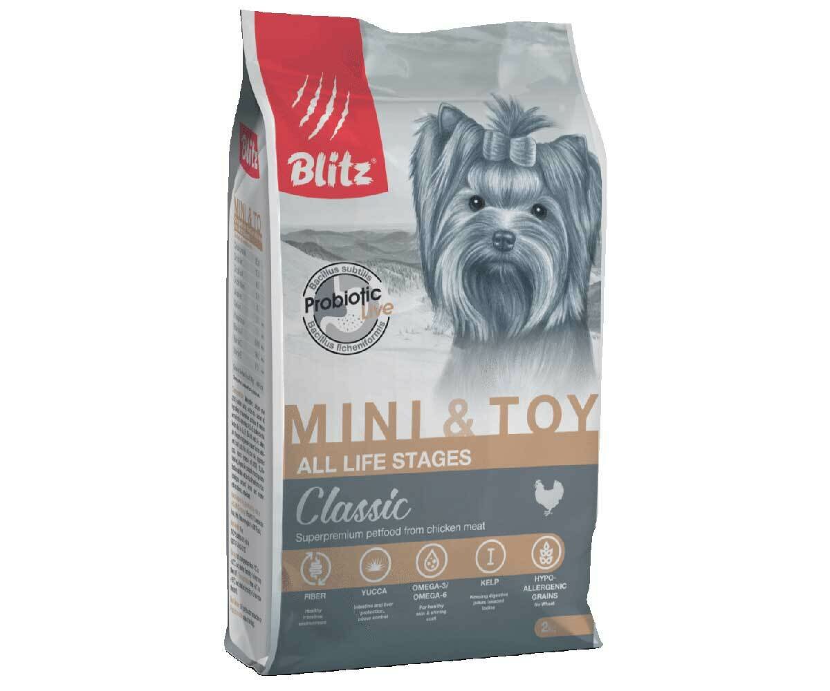 Корм Blitz Classic Adult Mini & Toy для собак миниатюрных и мелких пород с курицей 2 кг