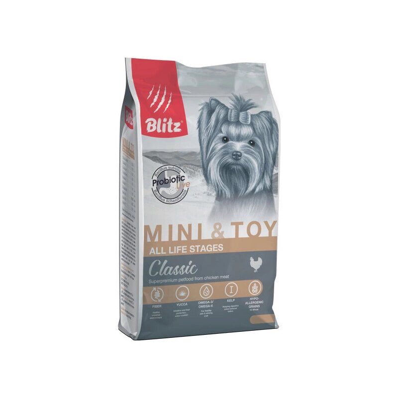 Корм Blitz Classic Mini & Toy для мелких и миниатюрных пород собак (до 10 кг), с курицей, 7 кг