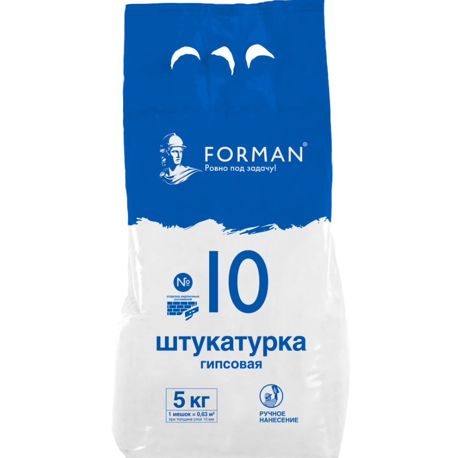 Штукатурка гипсовая Forman №10 5 кг основание под последующую финишную отделку для внутреннего выравнивания стен, потолков, заделки швов, трещин, выбо