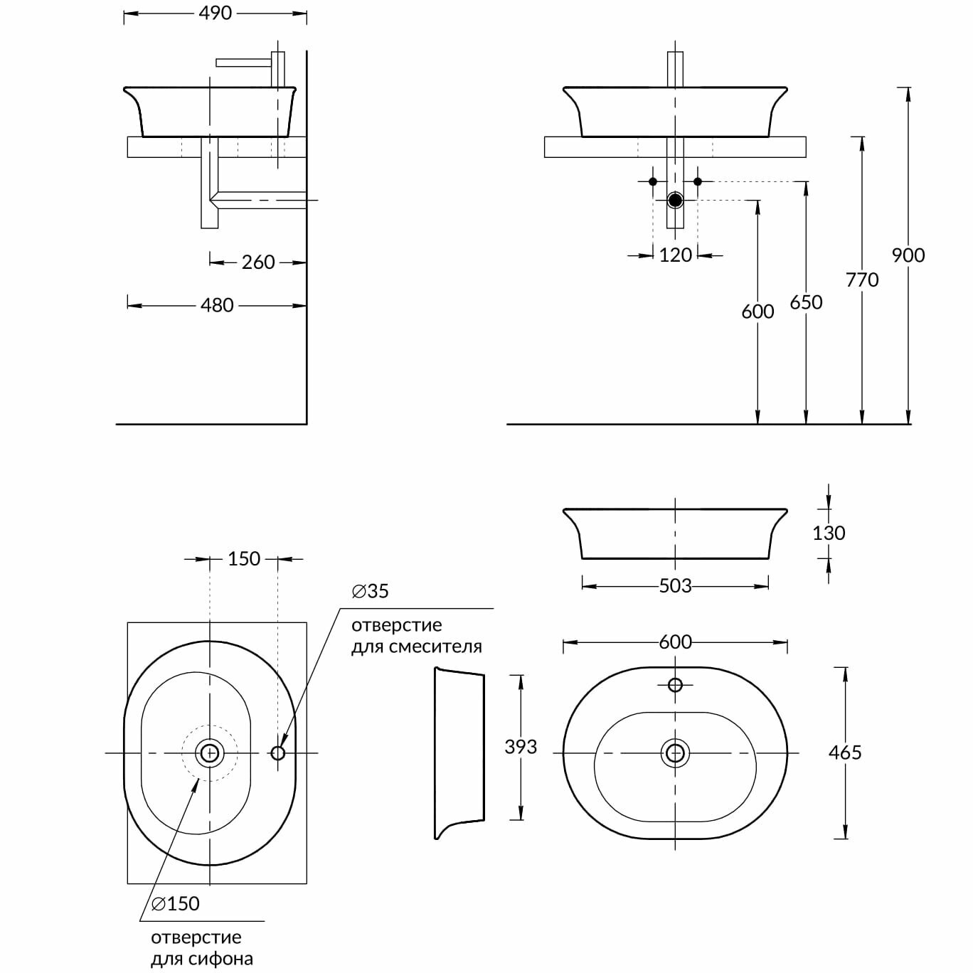 | Число размеченных отверстий под смеситель | отсутствуют |