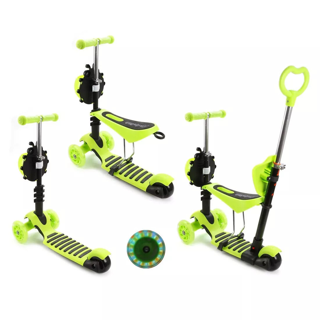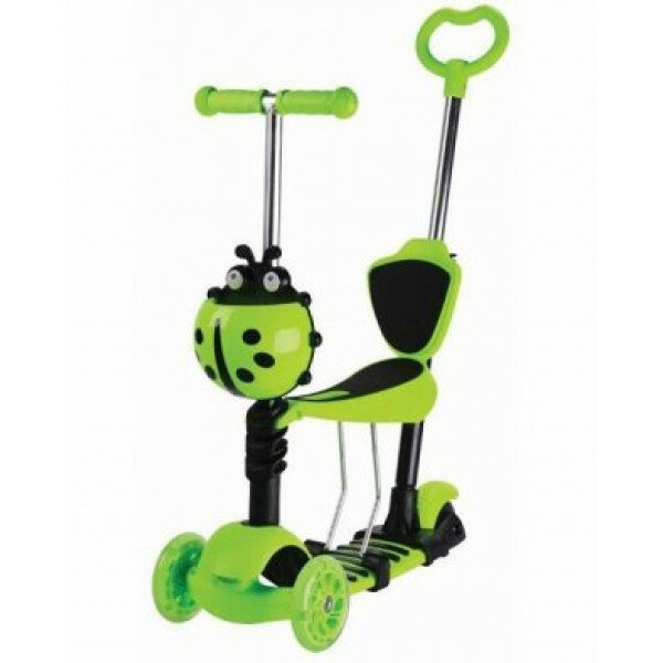 Самокат для малышей "Moby Kids Божья Коровка" 3в1 (зеленый) (с ручкой, светящиеся колеса)