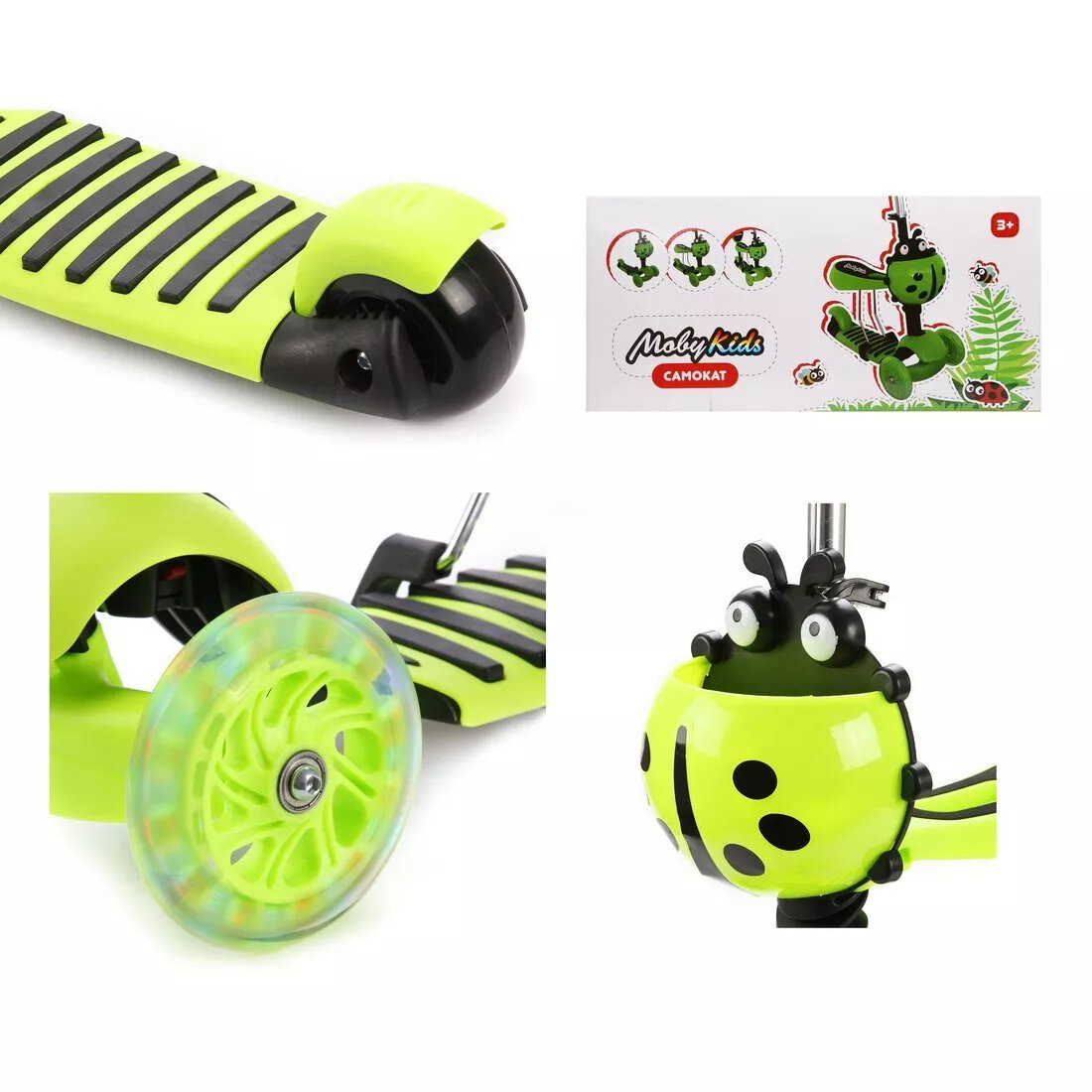 Трехколесный самокат 3 в 1 Moby Kids Божья коровка со светящимися колесами зеленый 641274