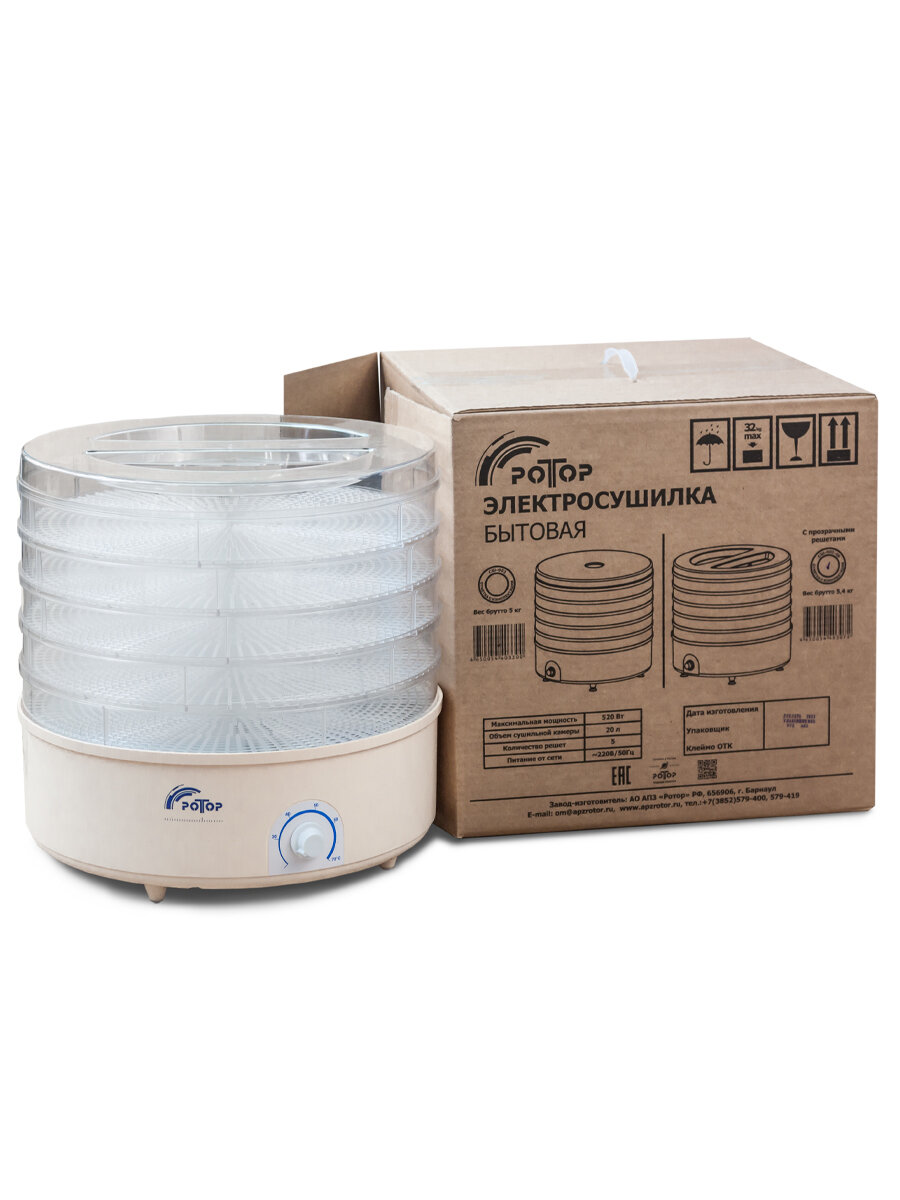 Сушилка для овощей и фруктов Ротор СШ-002, 5 прозрачных поддонов, гофротара, Барнаул