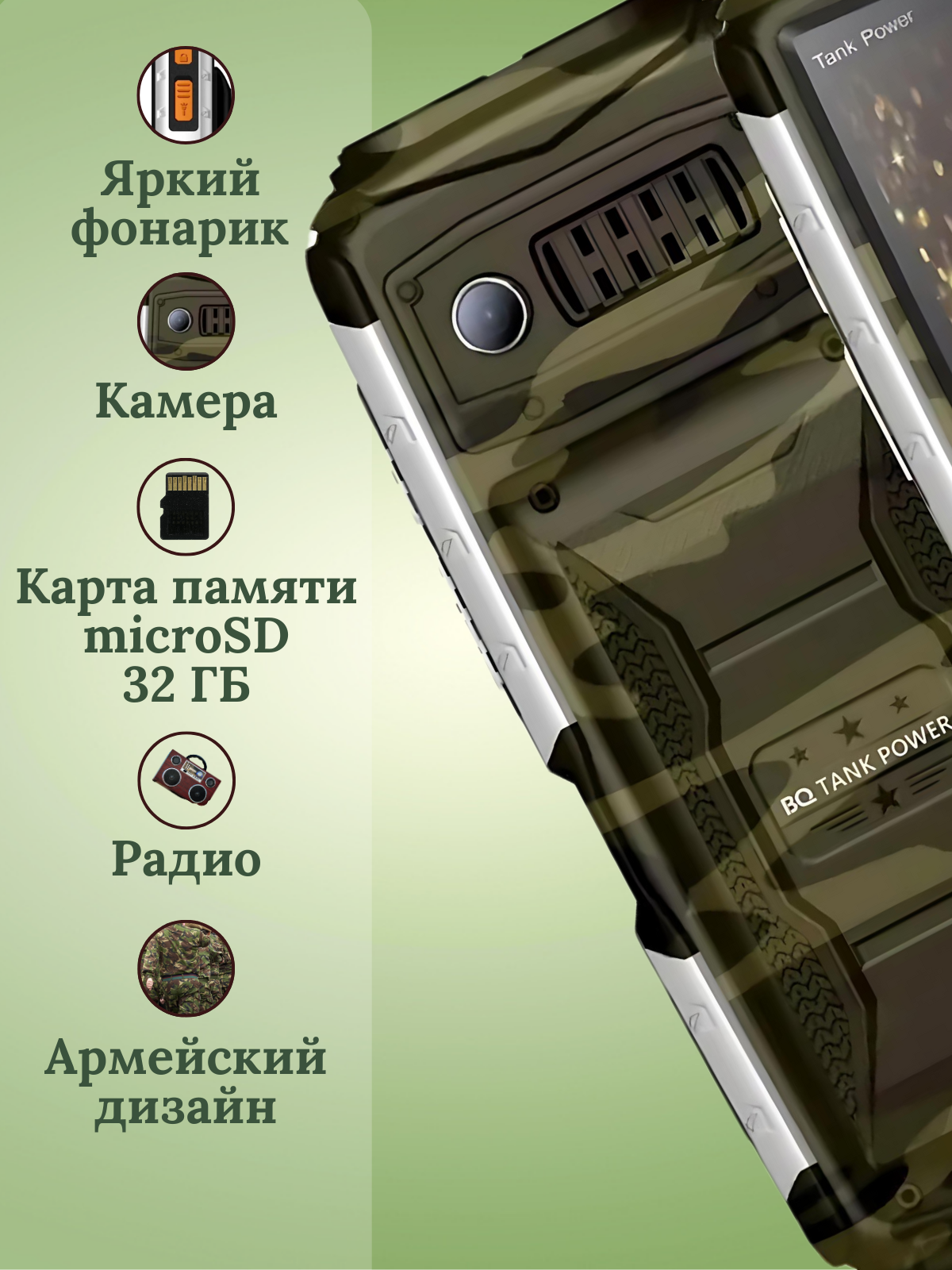 Телефон BQ BQ-2430 Tank Power камуфляж