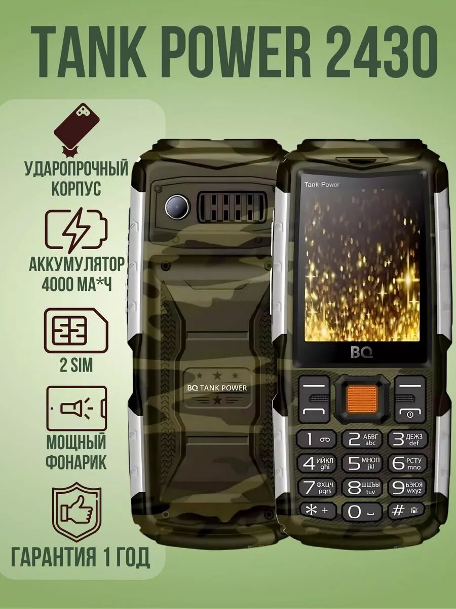 Телефон Bq 2430 TANK POWER CAMOUFLAGE+GOLD