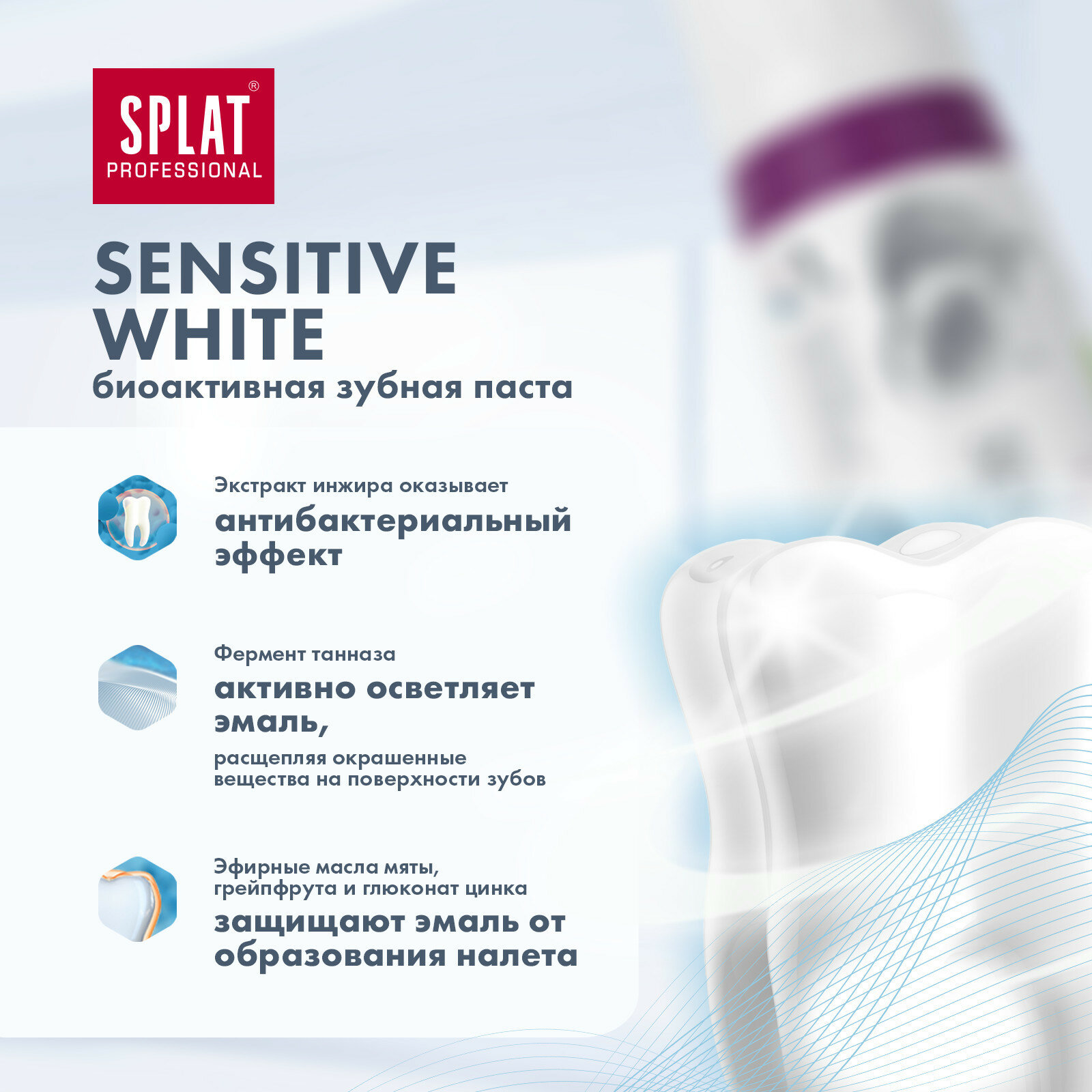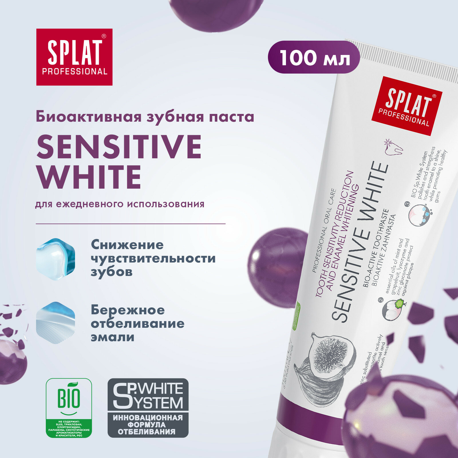 Зубная паста Splat Professional Sensitive White с экстрактом инжира, отбеливание и снижение чувствительности зубов, 100 мл
