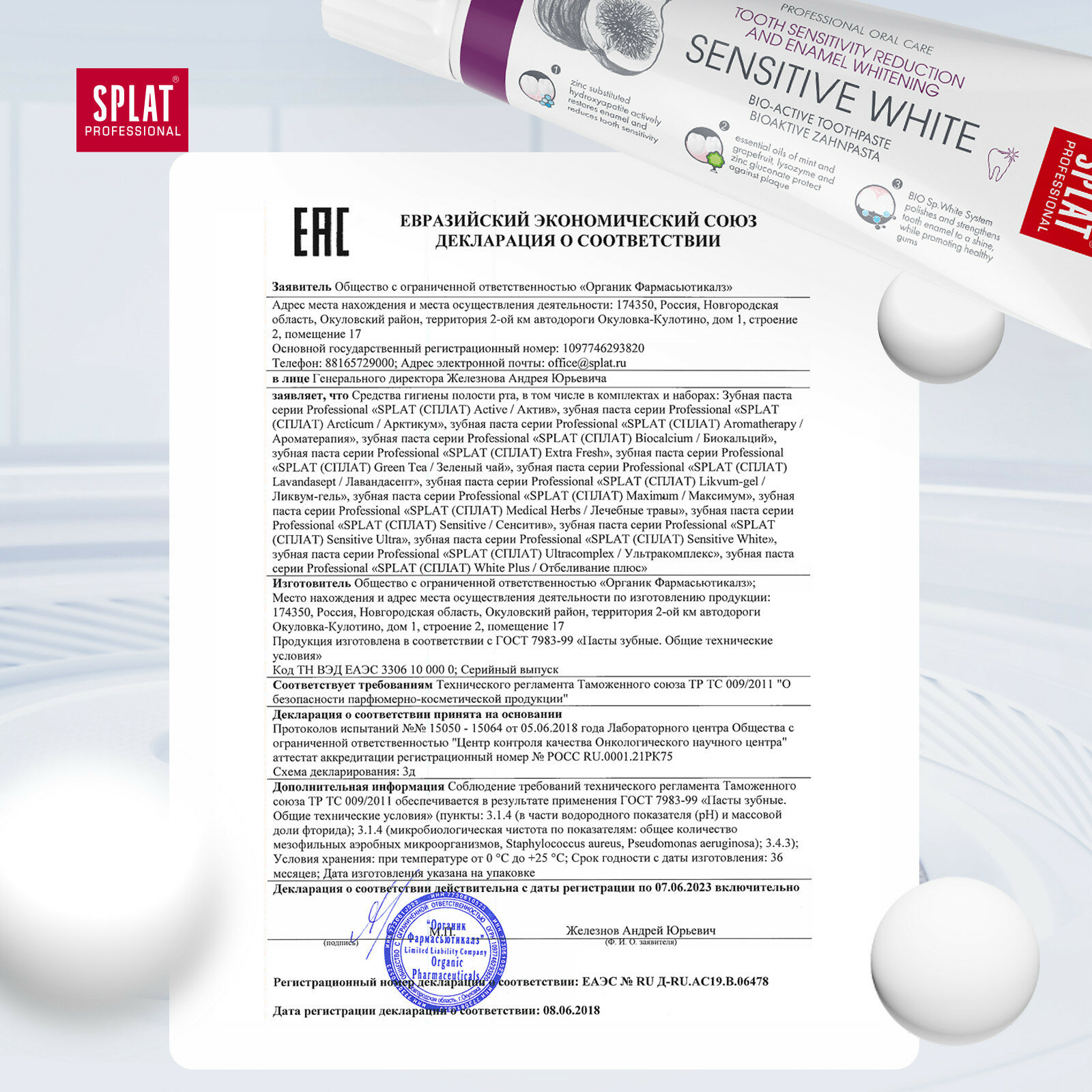 | Тип | зубная паста |