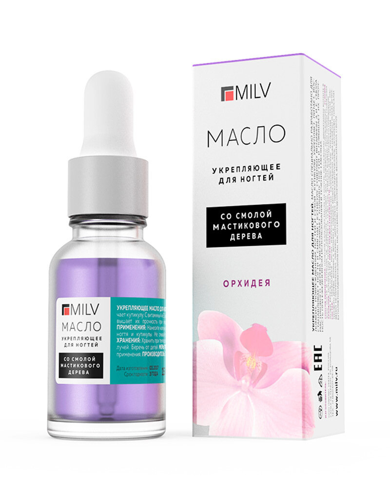 MILV Укрепляющее масло для ногтей со смолой мастикового дерева "Орхидея". 15 мл