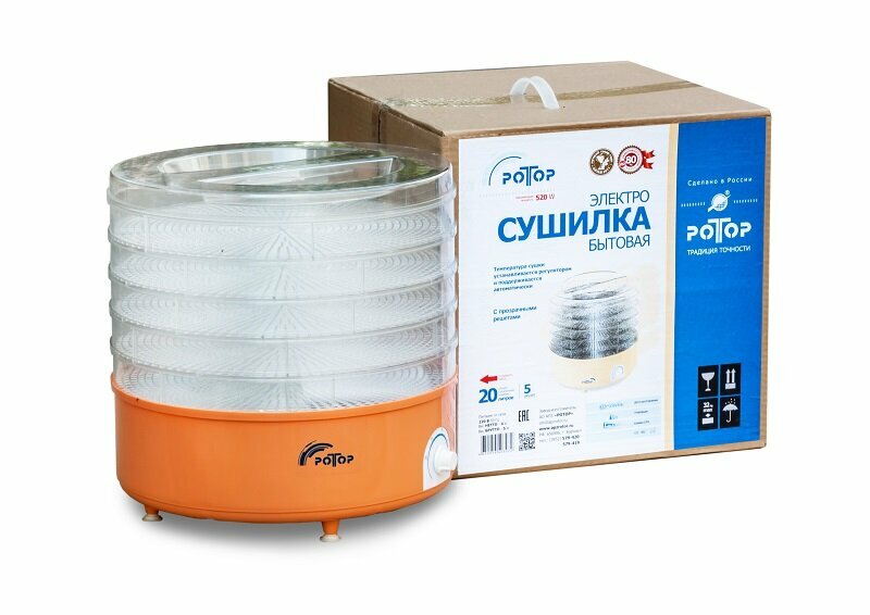 Сушилка для овощей и фруктов Ротор СШ-002, 5 прозрачных поддонов, гофротара, Барнаул