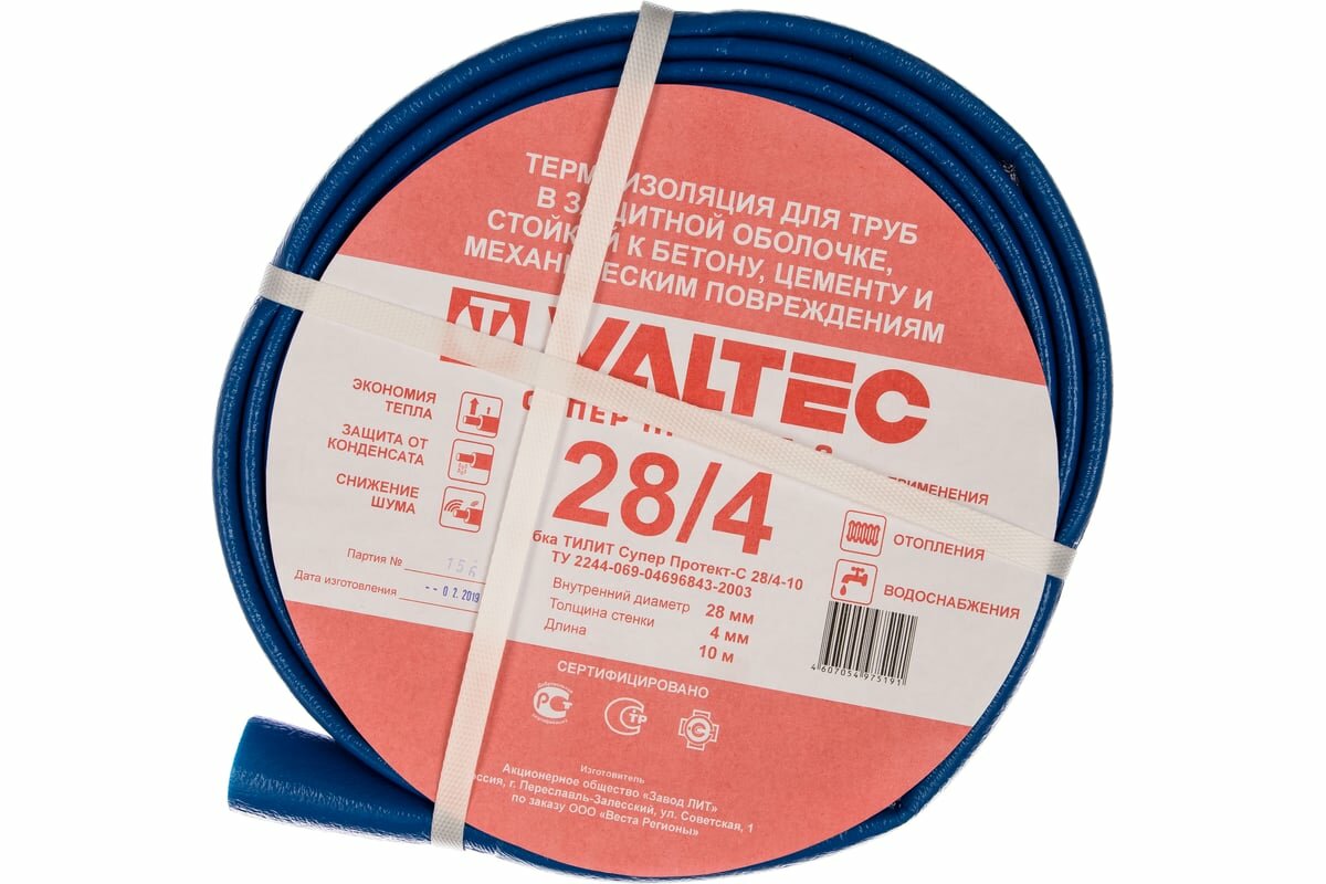 Трубная теплоизоляция VALTEC Супер Протект в синей оболочке 28/4 бухта 10м