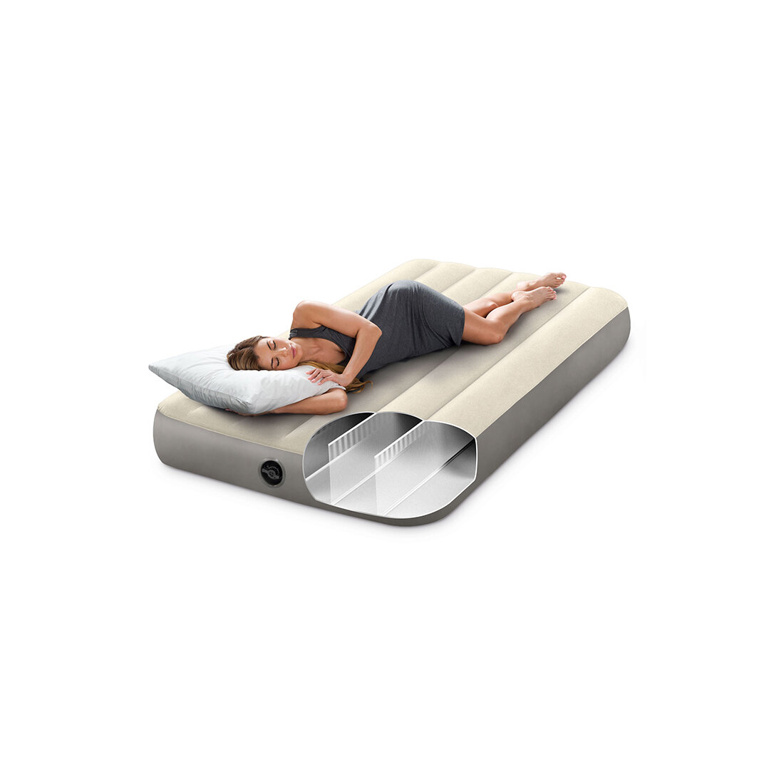 Купить Надувной матрас Intex Deluxe High 64101, 191х99 см, бежевый/серый