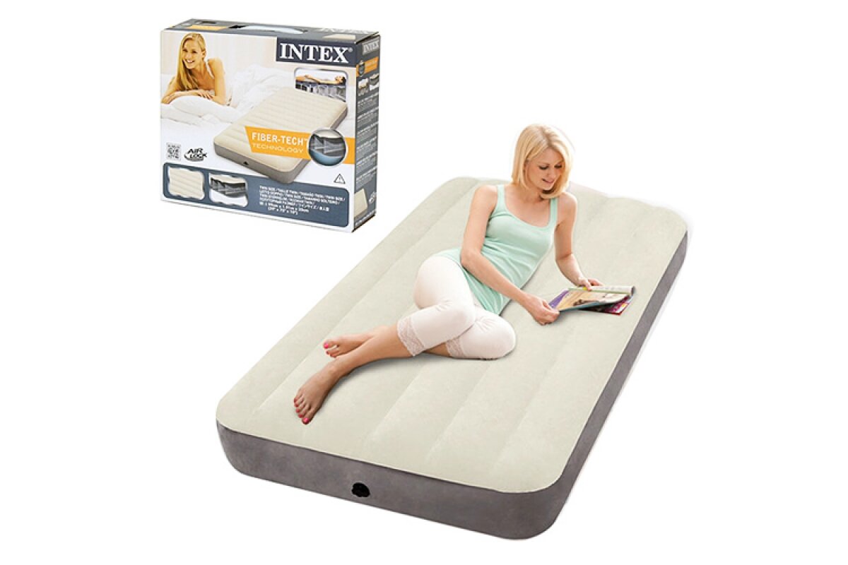 Надувной матрас, Intex 64101 Twin Dura-Beam Deluxe, флок, 99 х 191 х 25 см