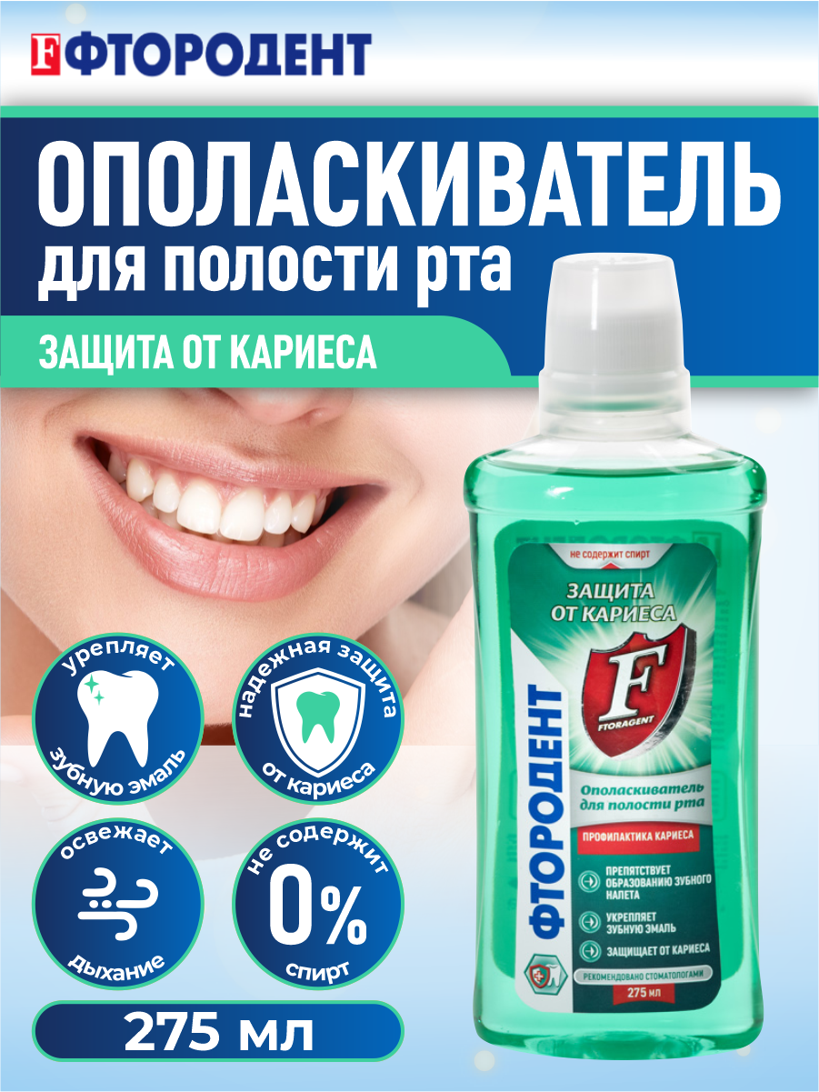 Фтородент Ополаскиватель для полости рта, Защита от кариеса, 275 мл