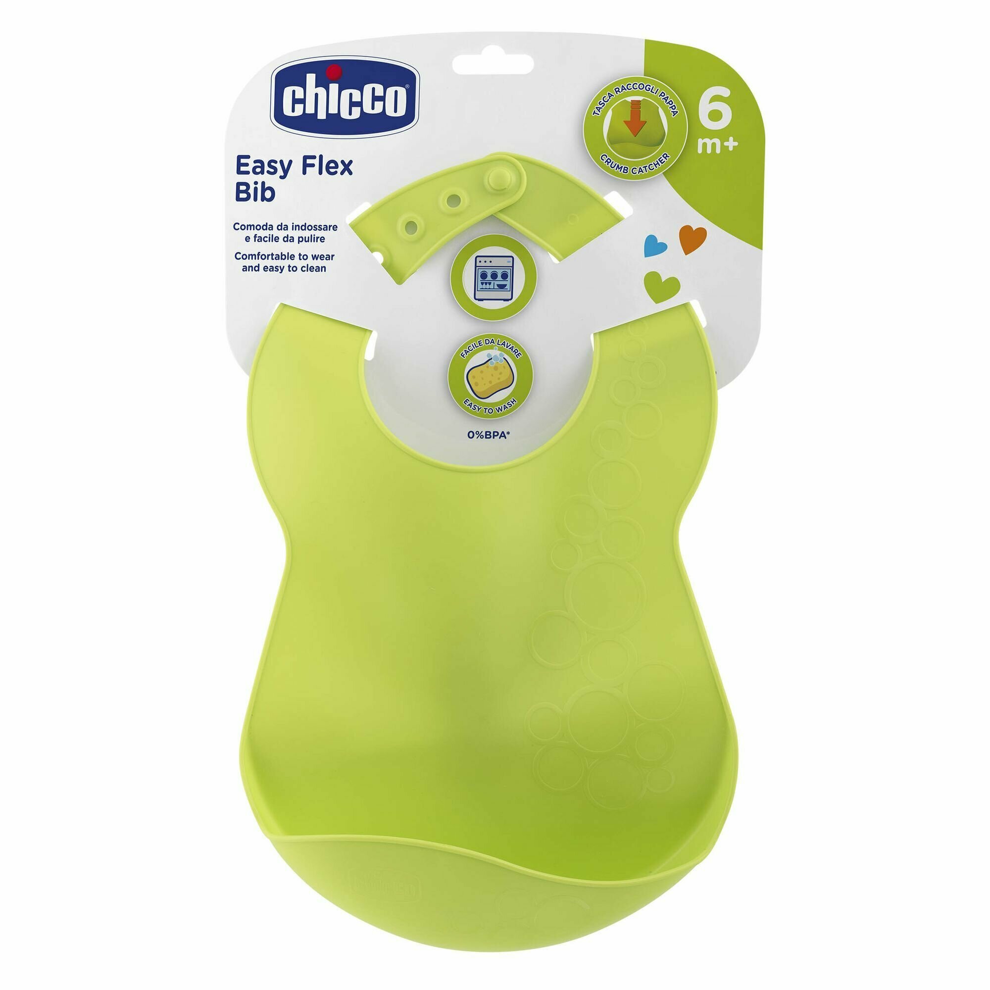 Нагрудник силиконовый Chicco Flex 00016302300000, 6 мес.+, зеленый