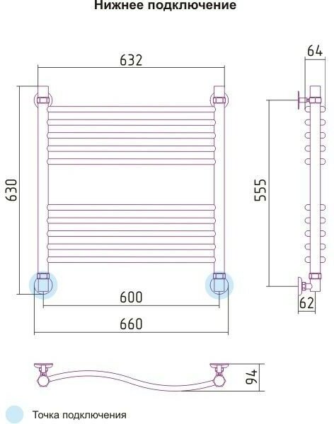 Полотенцесушитель водяной Сунержа Флюид+ 00-0222-6060