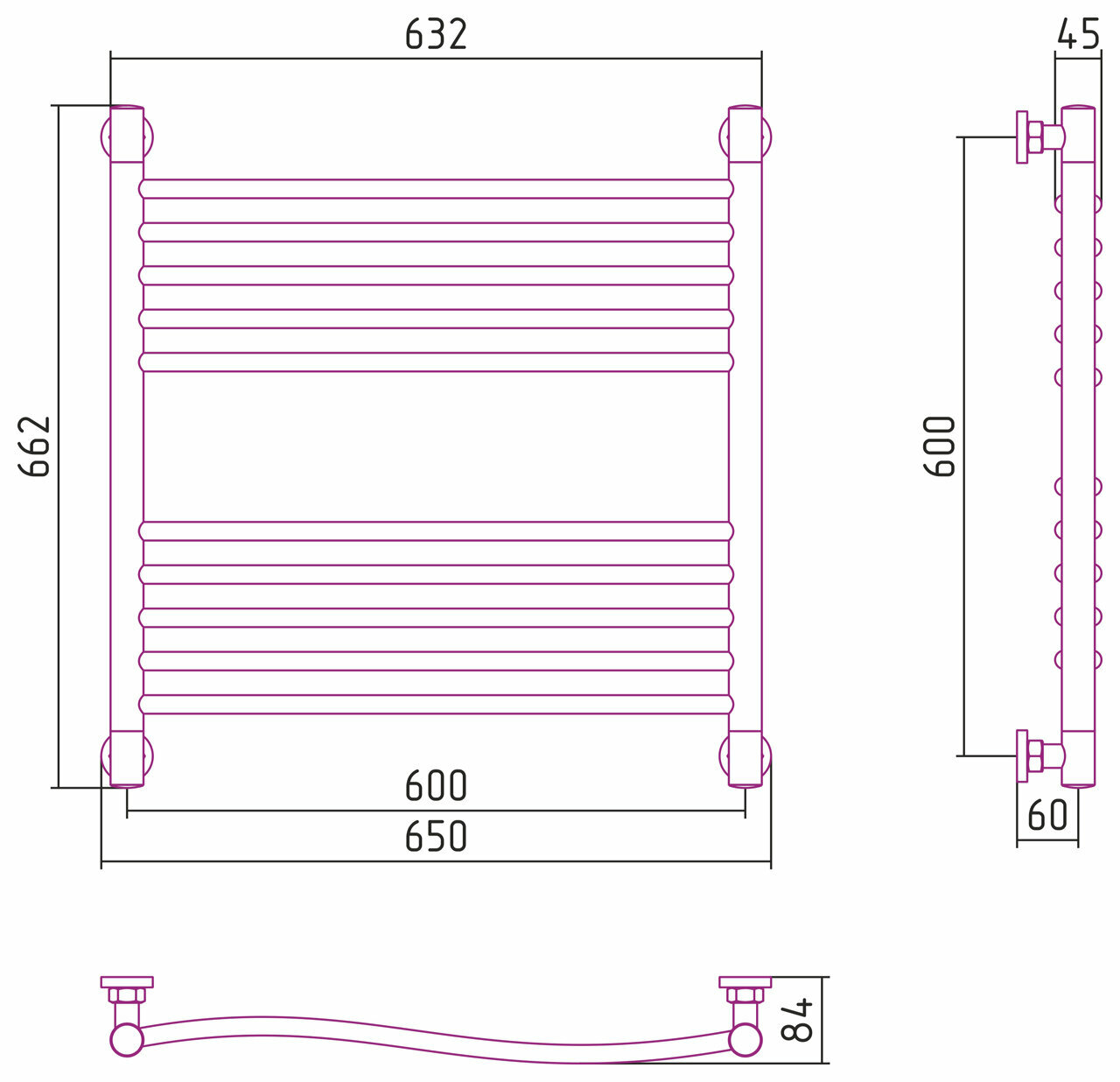 Полотенцесушитель водяной Флюид+ 600х600 Сунержа (00-0222-6060)