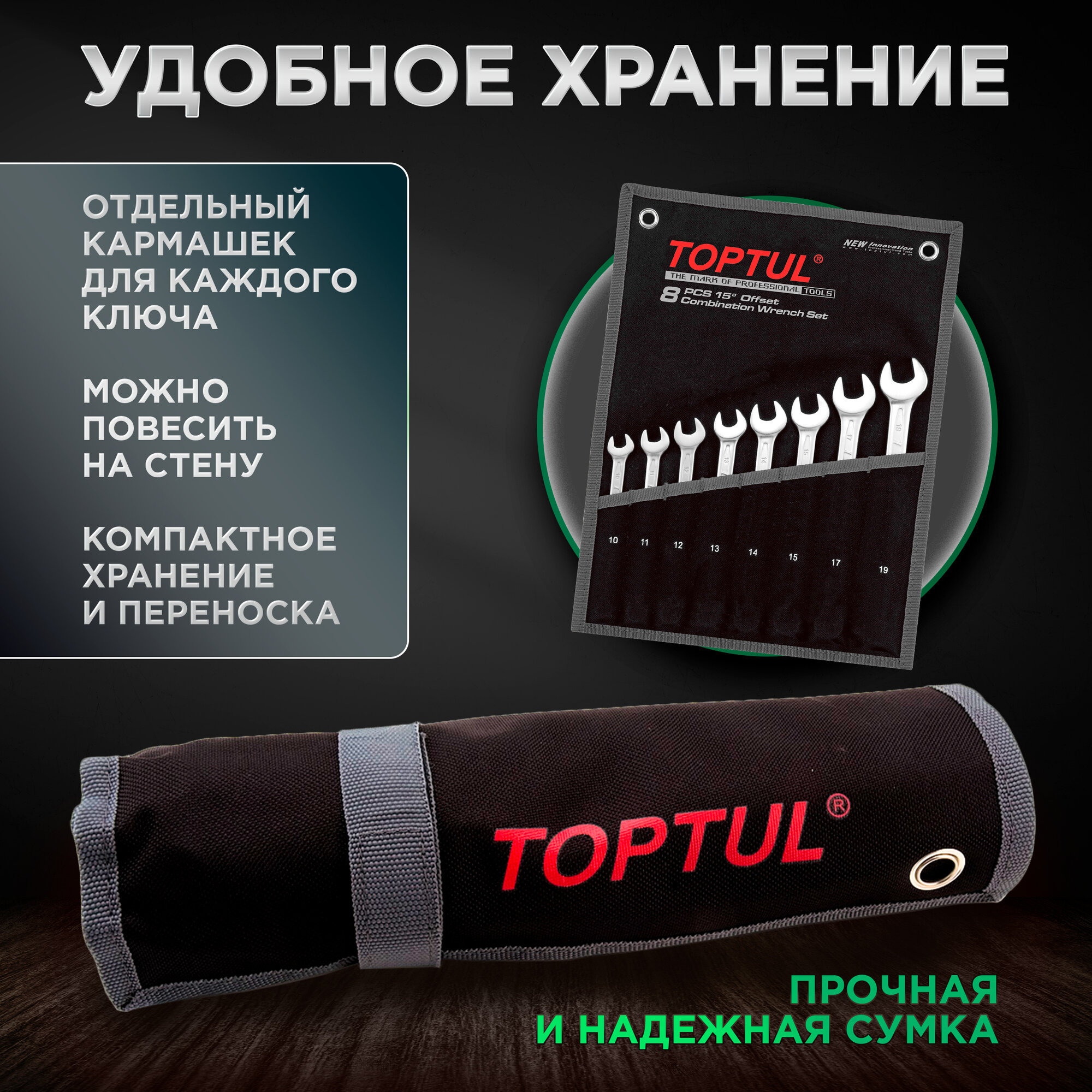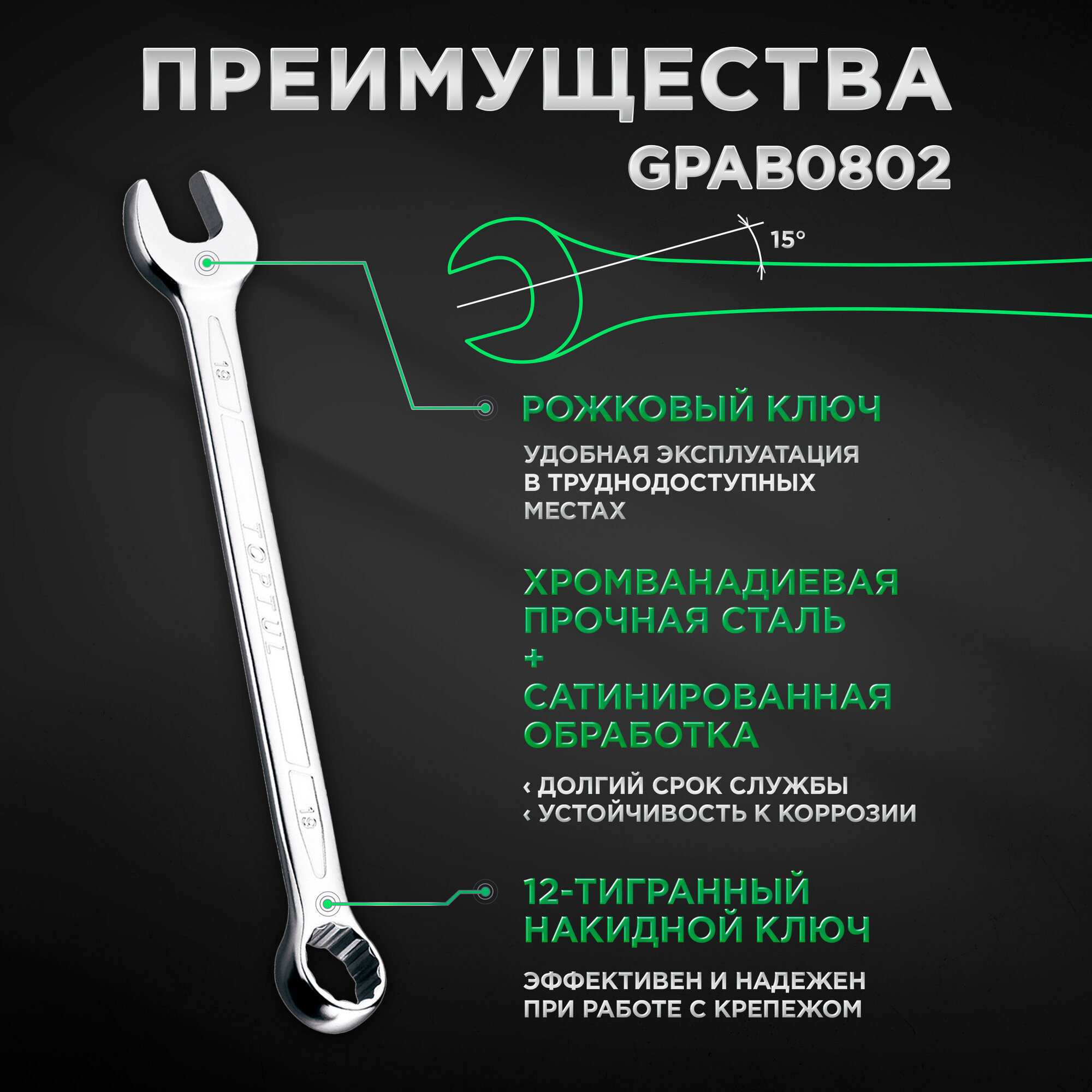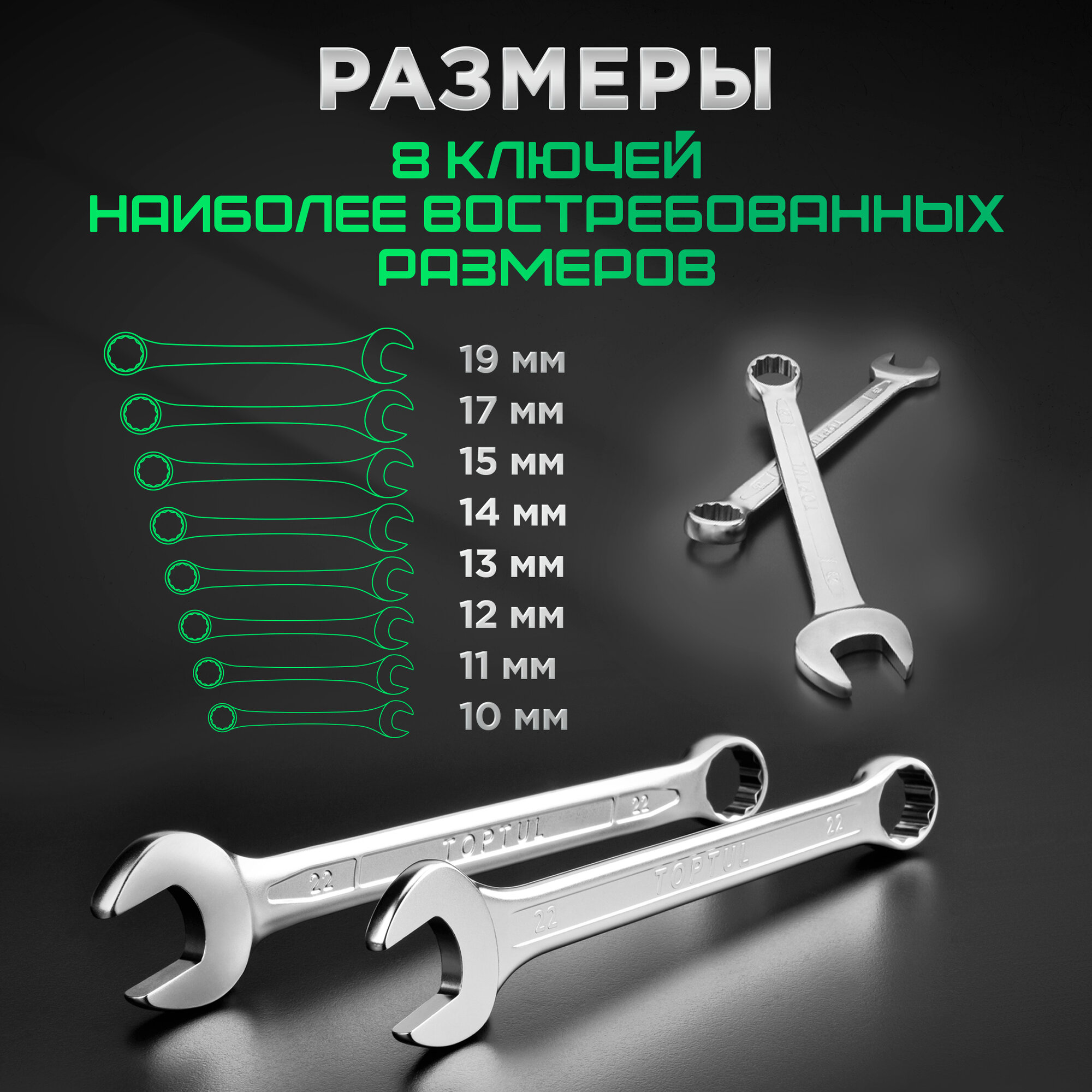 Набор ключей комбинированных 10-19 мм 8 предметов TOPTUL (GPAB0802) интересное: