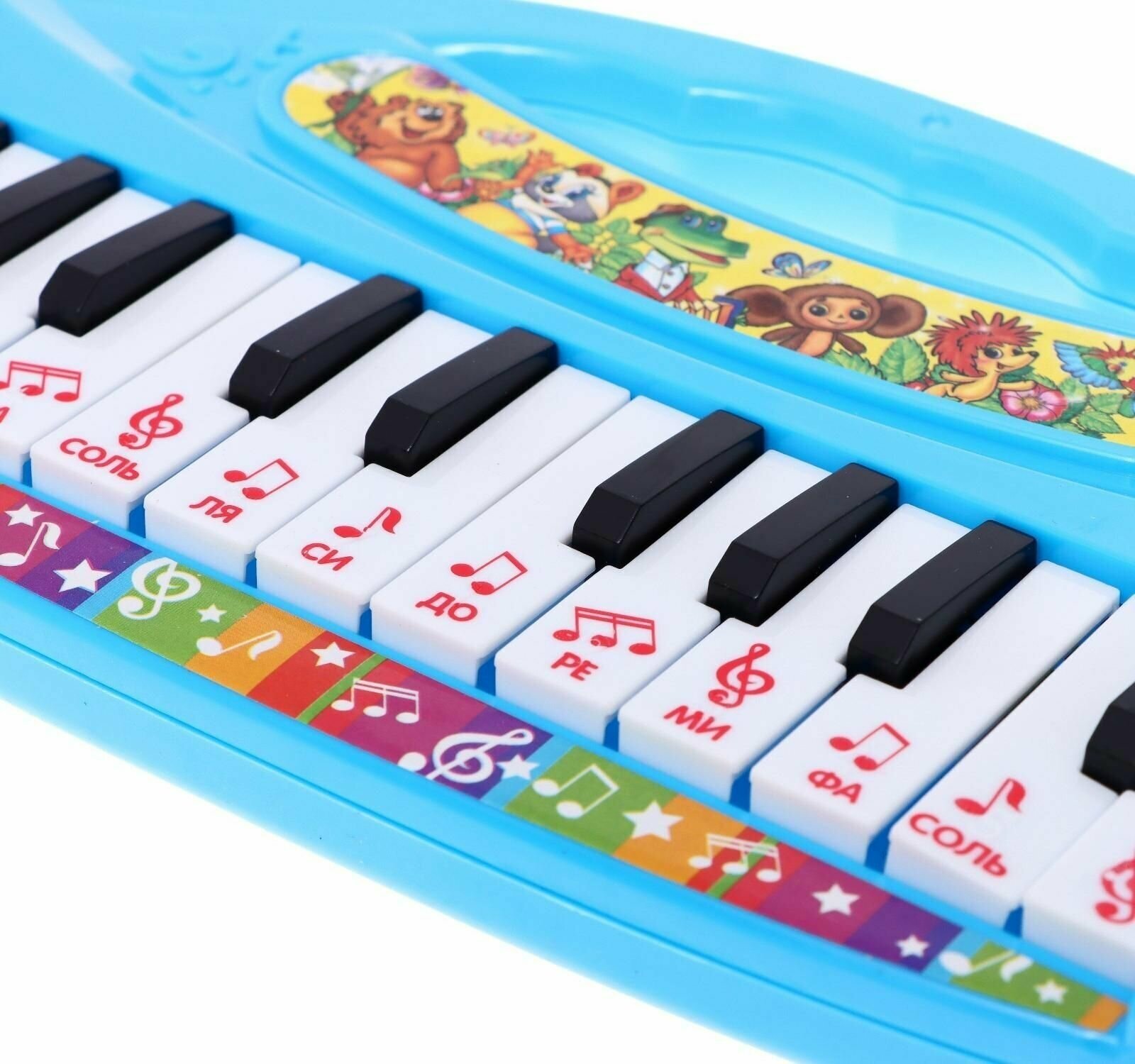 | Минусы: | Верхние клавиши с таким же звуком что и нижние. Раздражало что очень громко играет, но потом привыкли. Короткие отрывки песен. |